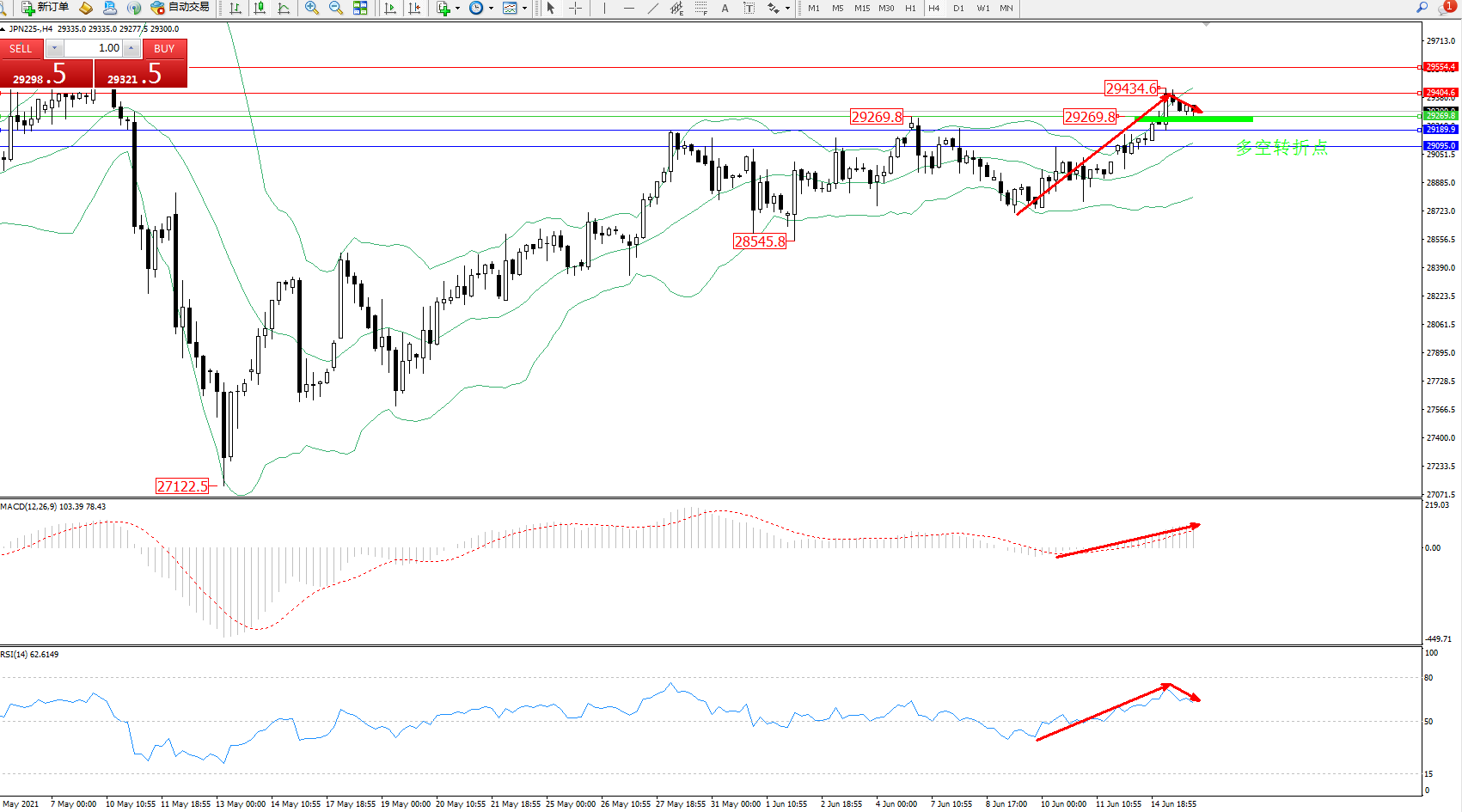 日经指数JPN225——4小时K线图显示: