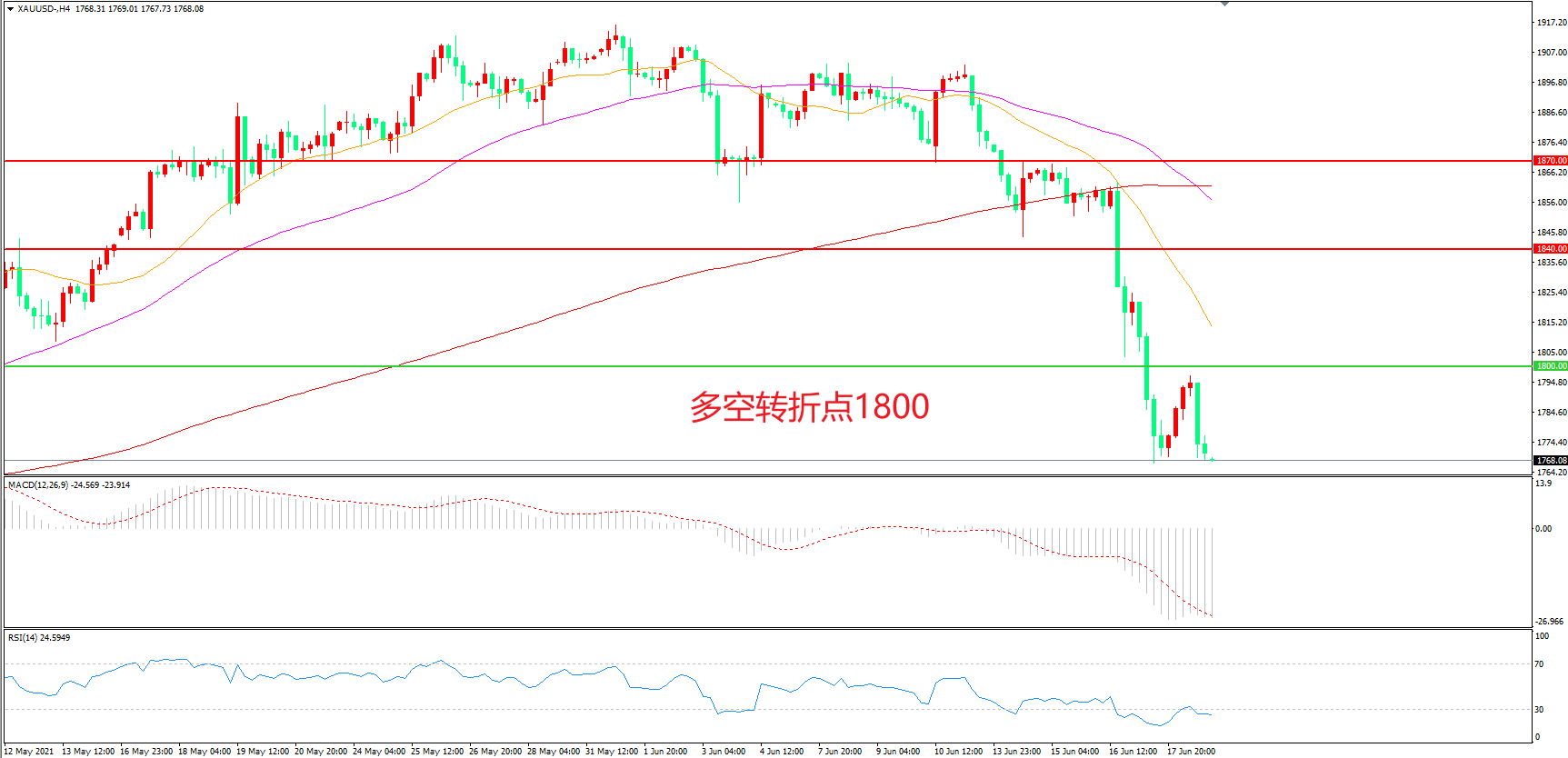 多空转折点:1800.00