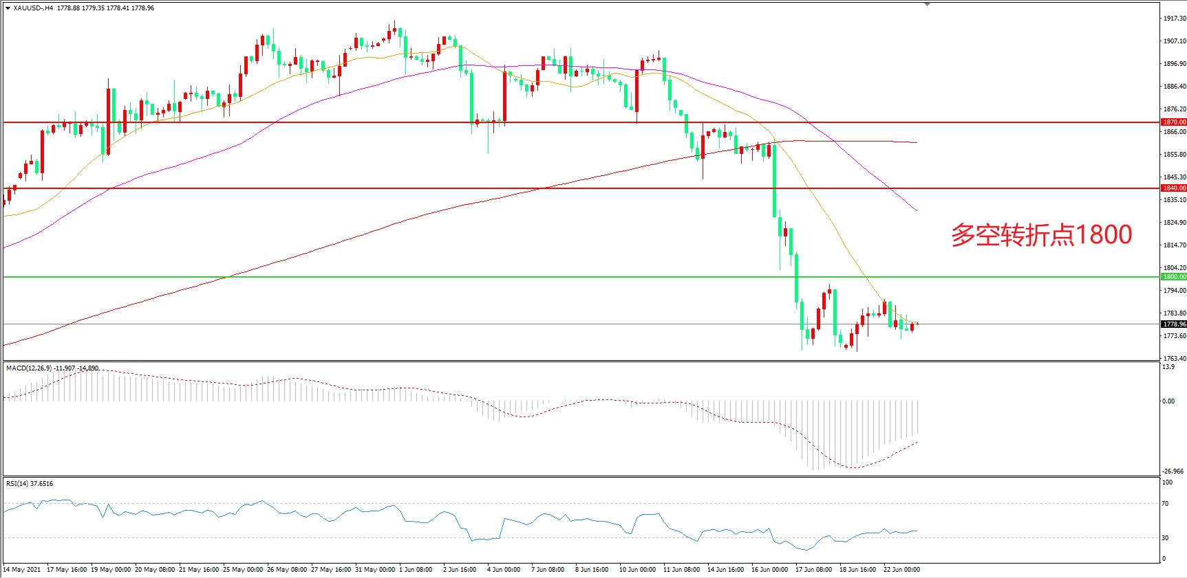 交易策略:在1800.00之下看跌,目标1760.00       1730.00
