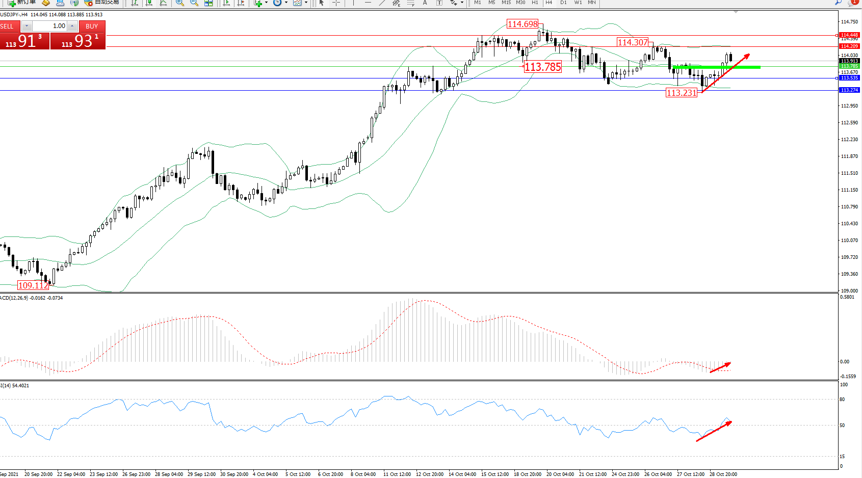 交易策略:113.785上方看涨,目标114.209、114.448