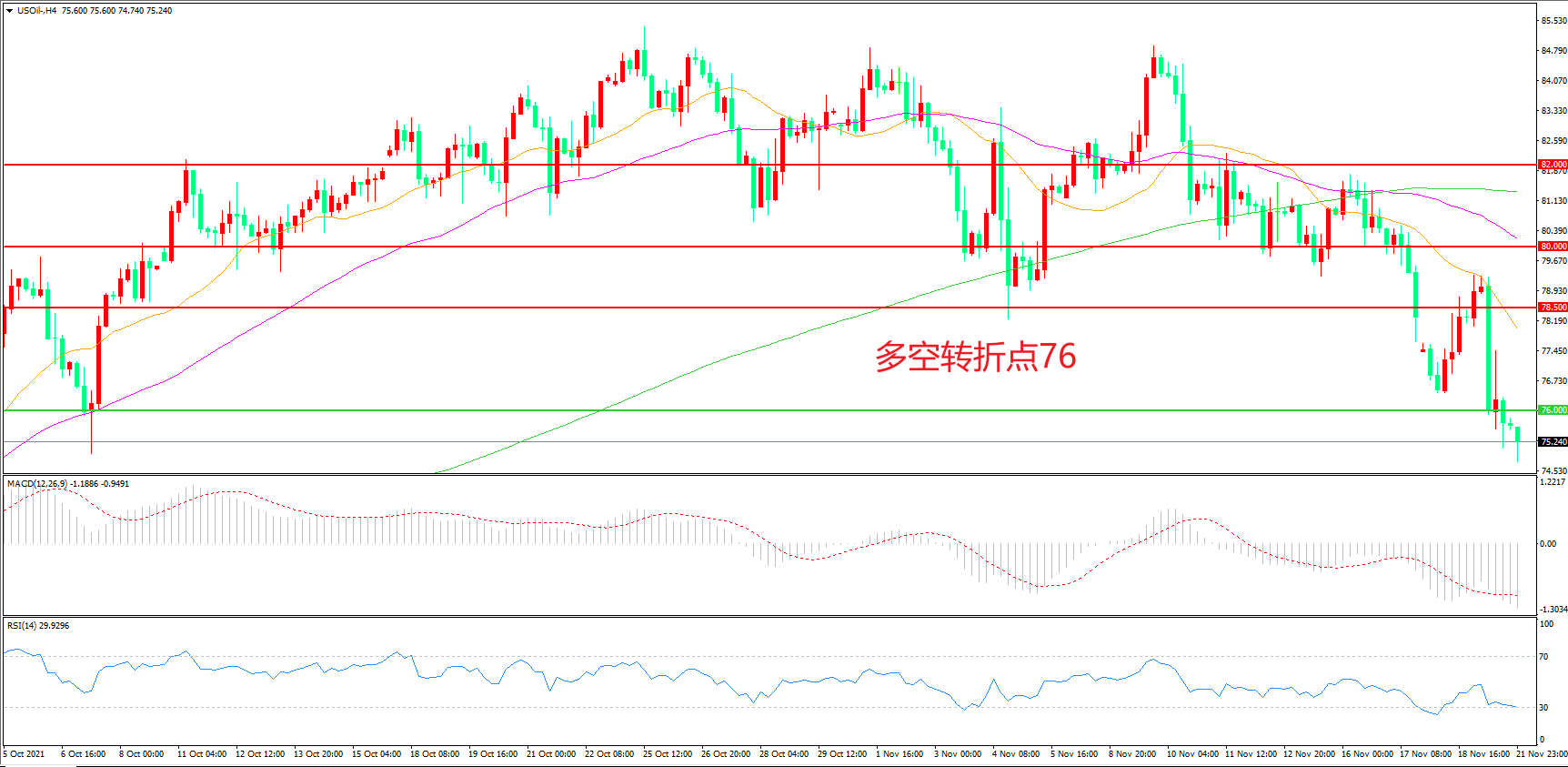 美国原油USOIL 4小时图