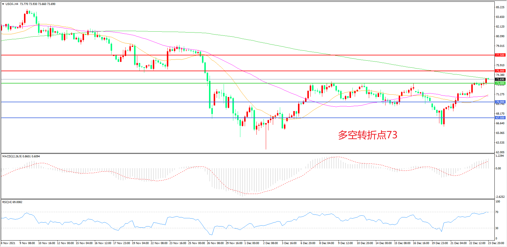 多空转折点:73.00