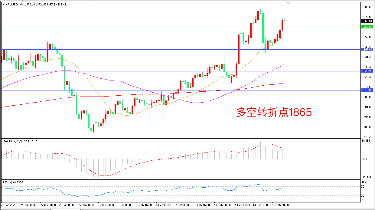 交易策略:在1865.00之上看涨,目标1880.00 1900.00
