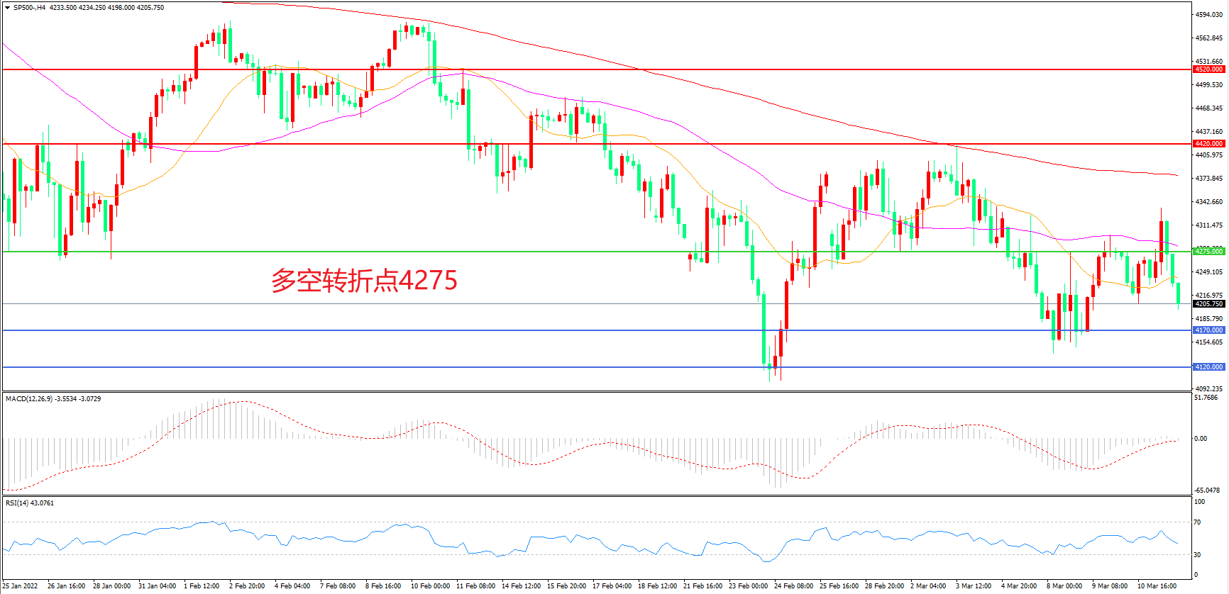 多空转折点:4275.00
