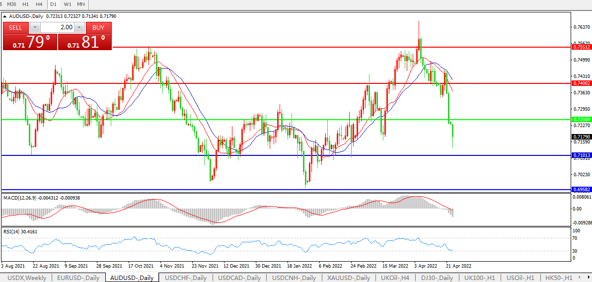 交易策略:0.7250下方看跌,目标0.7100、0.6950