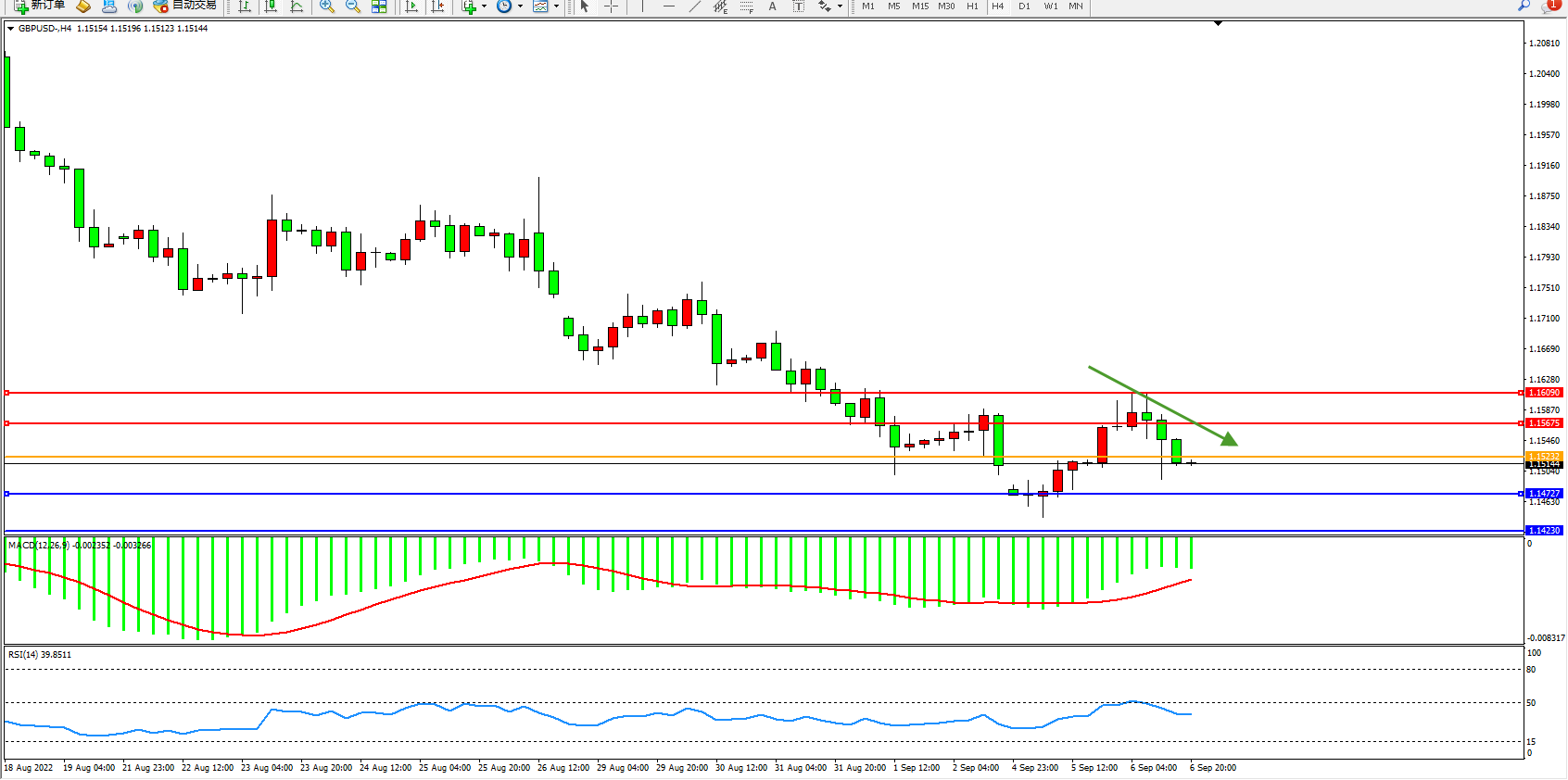 英镑美元GBPUSD ——4小时K线图显示:
