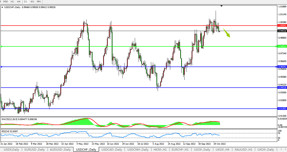 美元兑瑞郎USDCHF 日线图