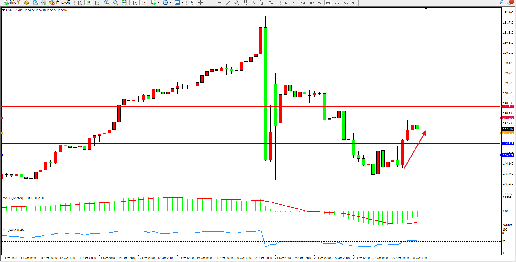 交易策略:147.349上方看涨,目标147.939、148.384