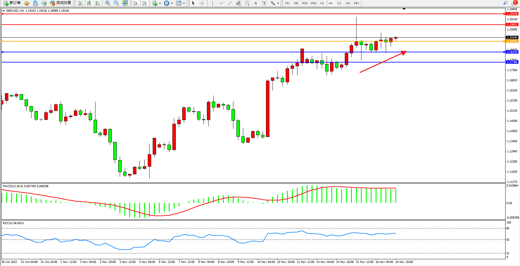 英镑美元GBPUSD ——4小时K线图显示: