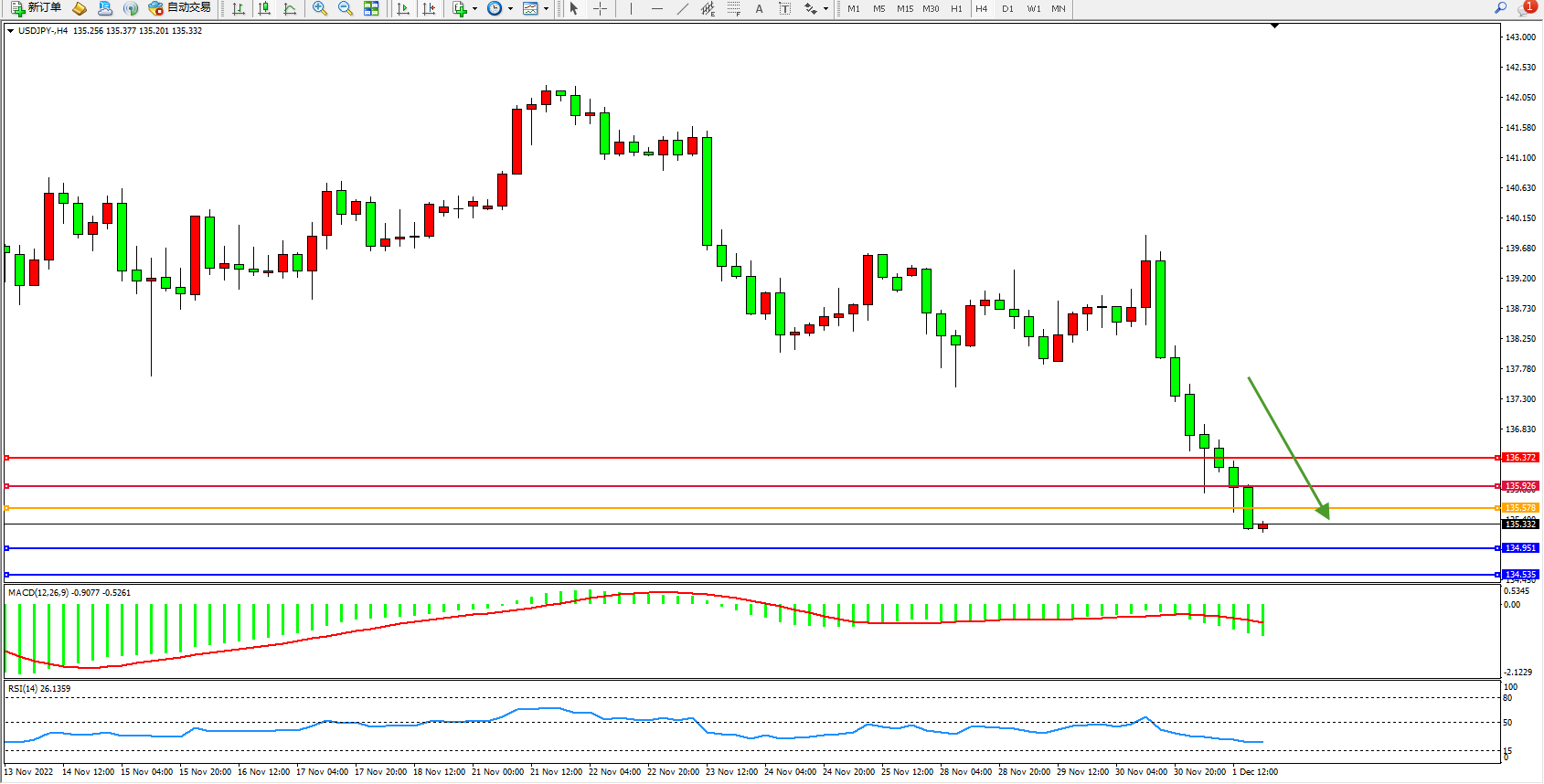 美元兑日圆维持135.332附近至震荡,因美联储放缓收紧政策的前景推低了美国国债收益率。美元兑日圆可能继续走低,该货币对容易受到美国国债收益率波动的影响。