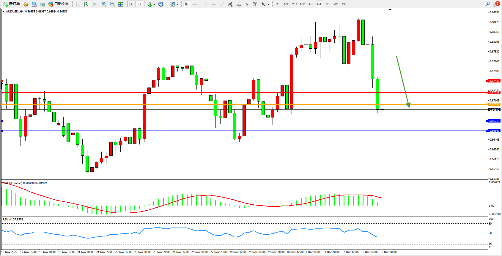 交易策略:0.67035下方看跌,目标0.66755、0.66590