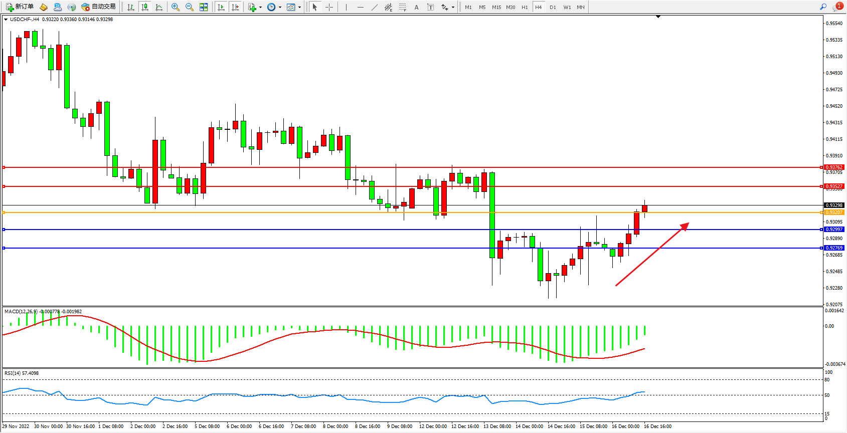 美元瑞郎USDCHF——4小时K线图显示: