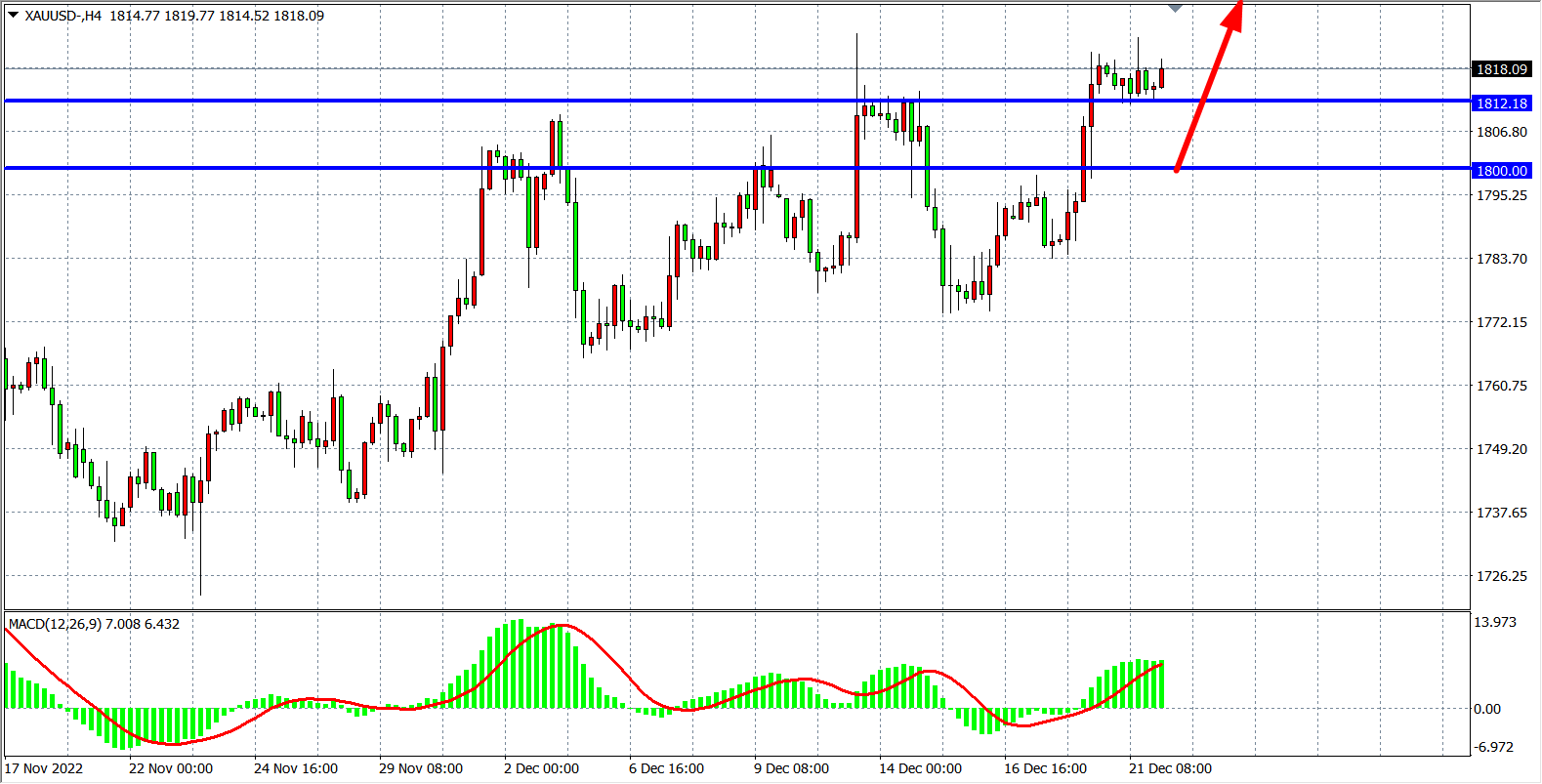 交易策略:在1800.00之上看涨,目标1825.00 1835.00
