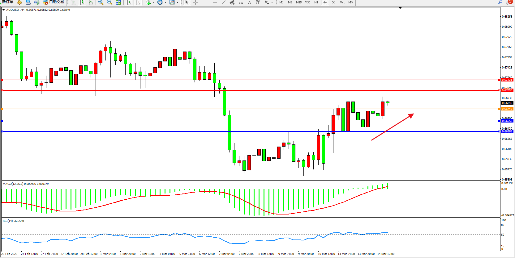交易策略:0.66749下方看跌,目标0.66553  0.66383