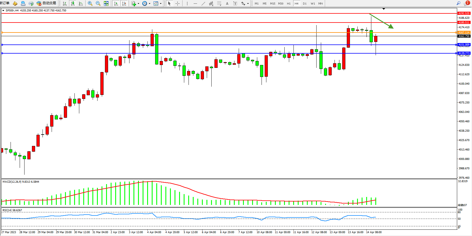标普SP500——4小时K线图显示:
