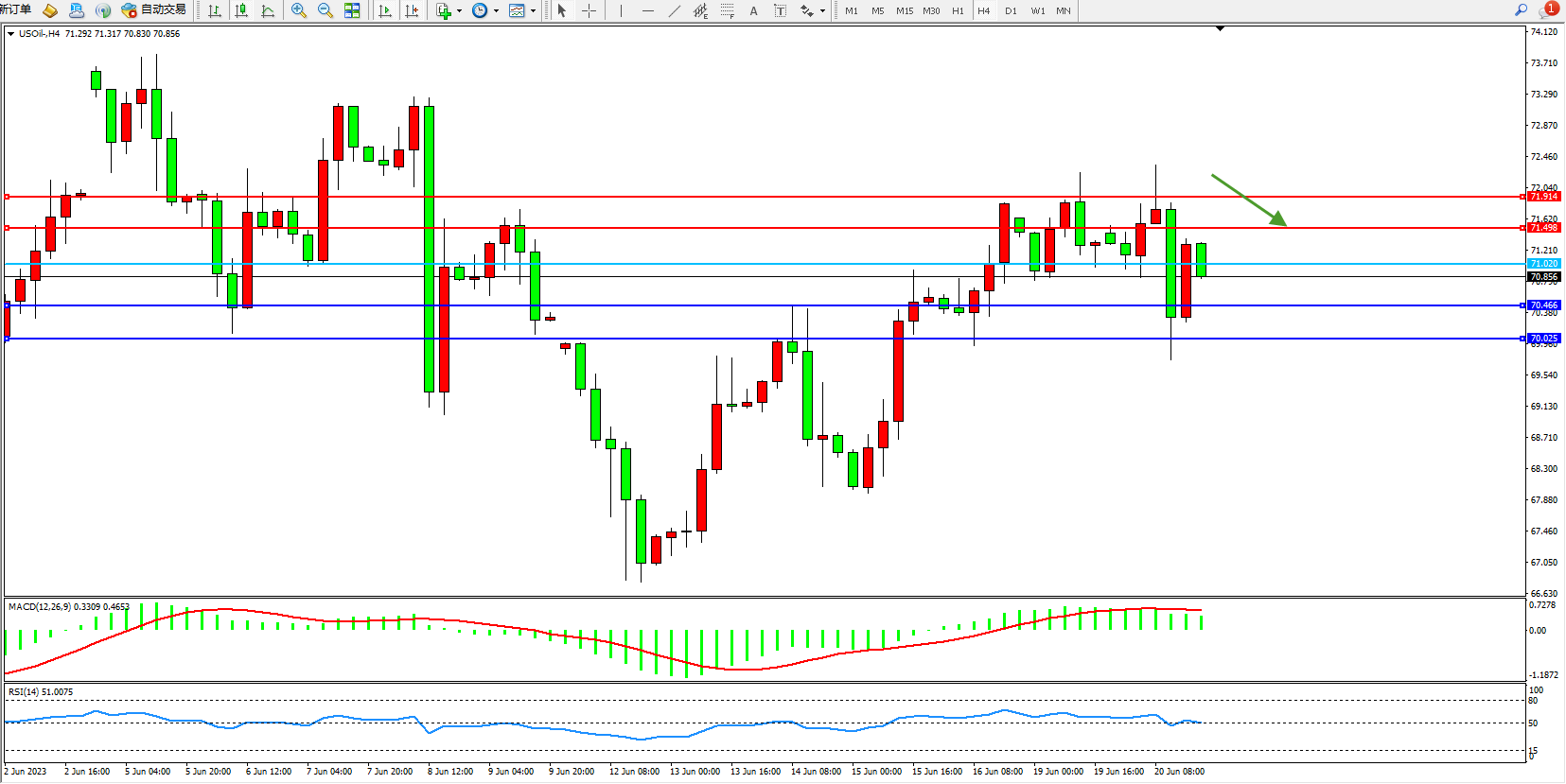 交易策略:71.020下方看跌,目标70.466 70.025