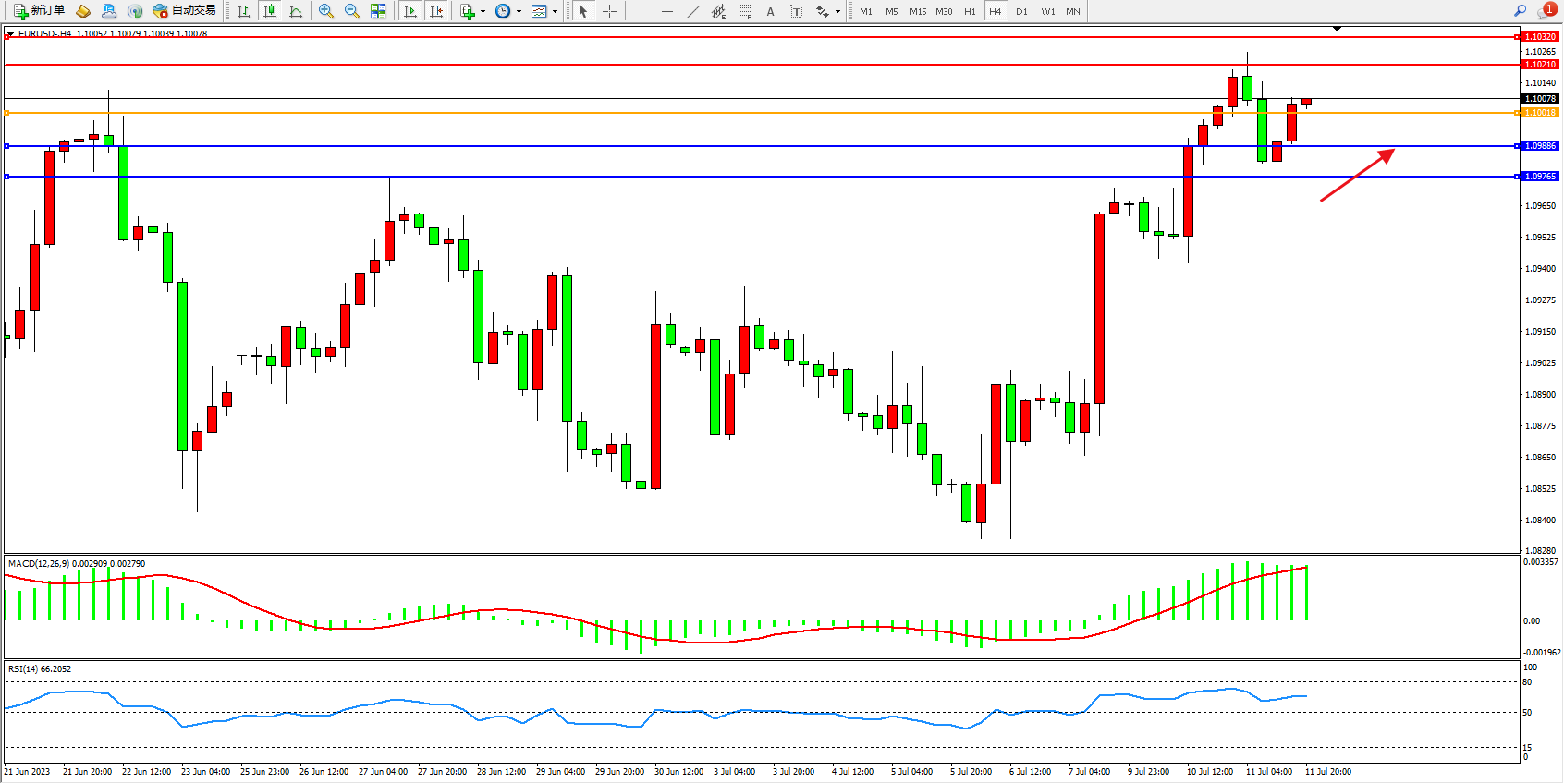 交易策略:1.10018上方看涨,目标1.10210 1.10320