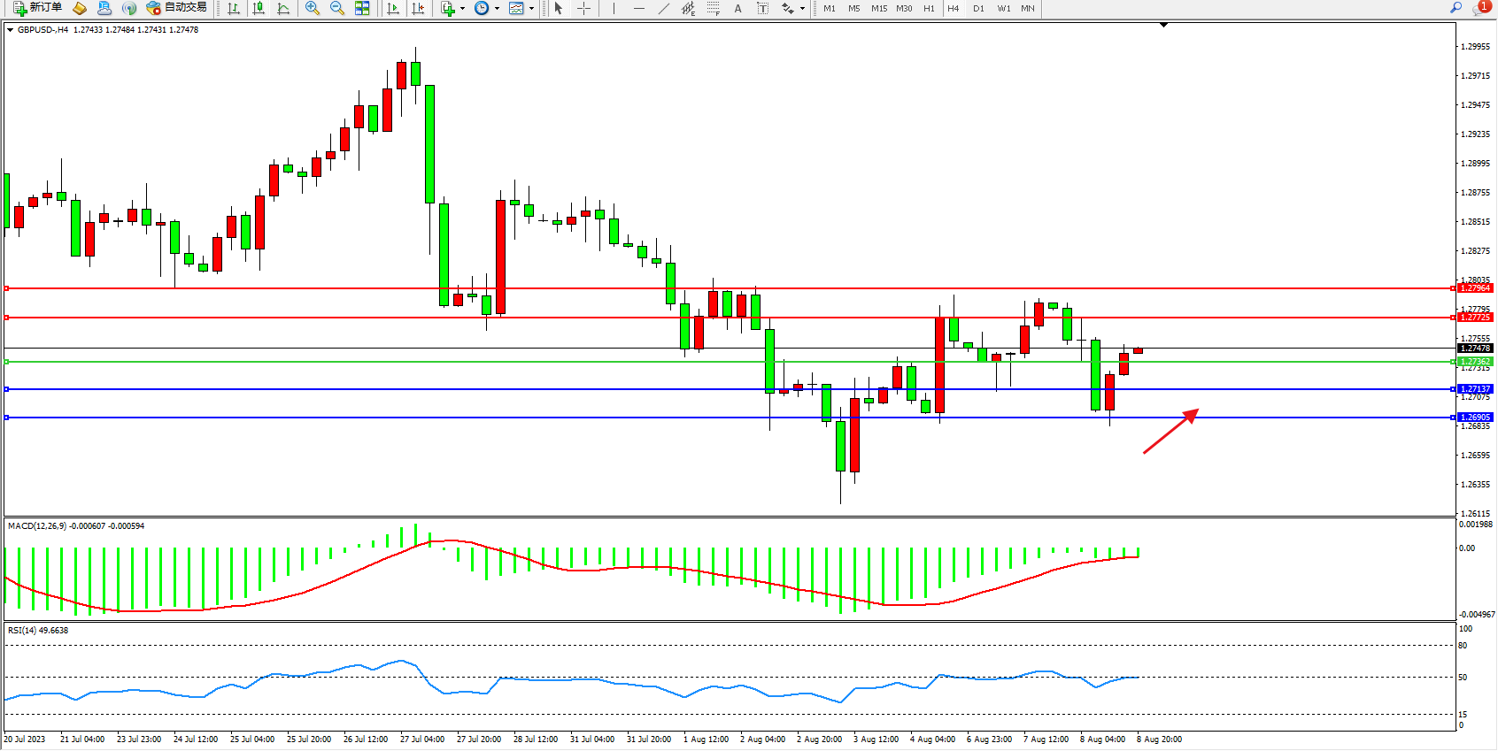 英镑美元GBPUSD ——4小时K线图显示: