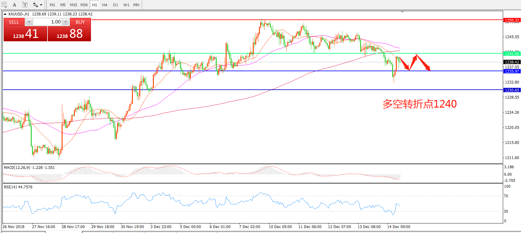 多空转折点:1240.00