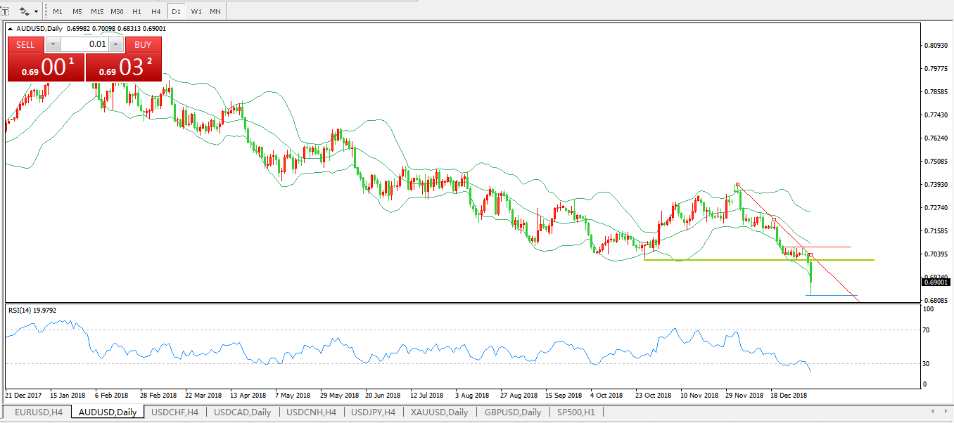 交易策略:在0.7015之下,看跌,目标价位为0.6920,然后为0.6833。