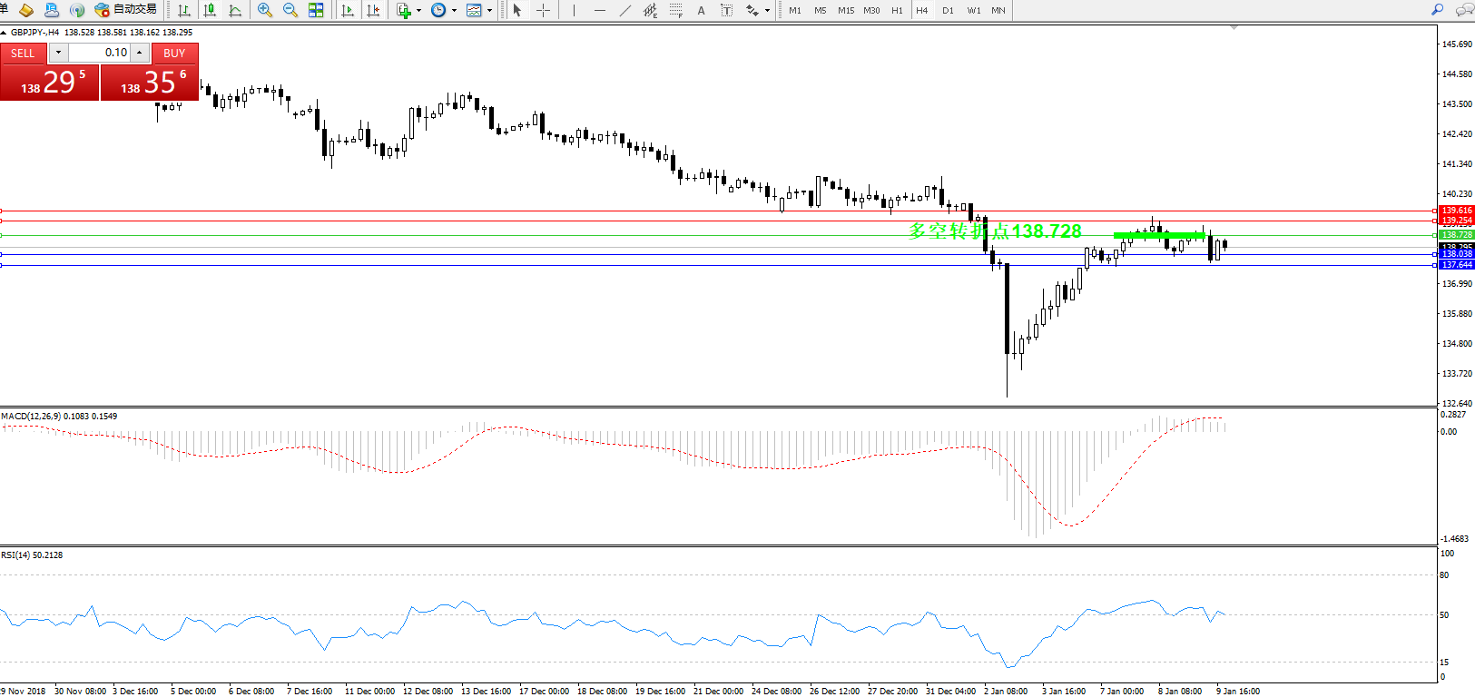 交易策略:138.728下方看跌,目标138.038、137.644