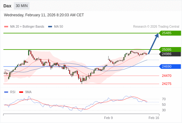 德国DAX指数 当日内: 期待25095。