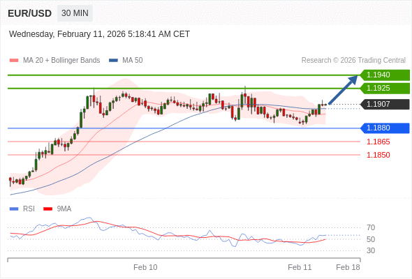 在 1.1880 之上,看涨,目标价位为 1.1925 ,然后为 1.1940 。