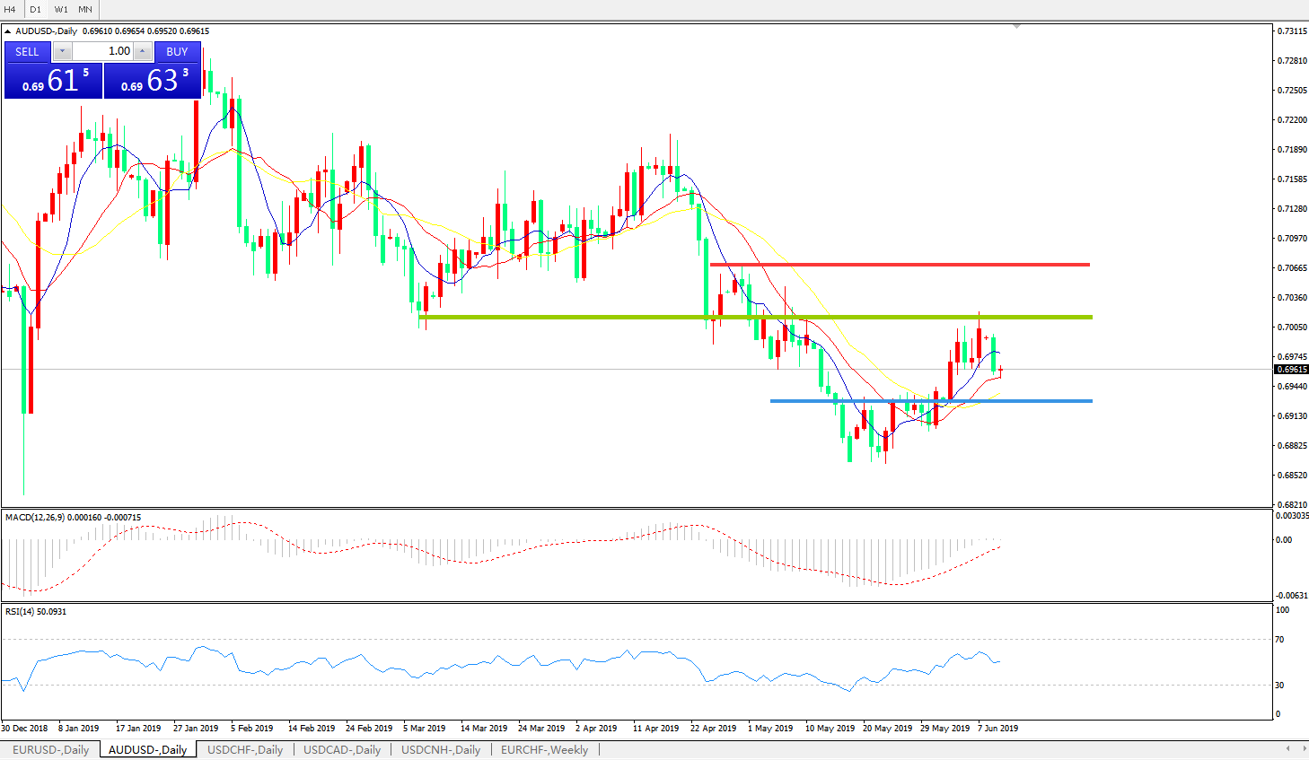 交易策略:0.7000下方看跌,目标0.6900、0.6860