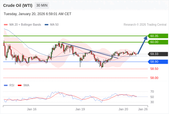 交易策略: 在 58.90 之上,看涨,目标价位为 60.00 ,然后为 60.35 。