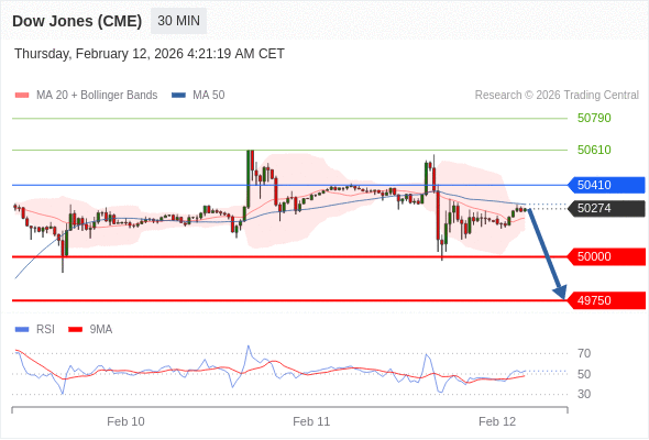 交易策略: 在 50410 之下,看跌,目标价位为 50000 ,然后为 49750 。