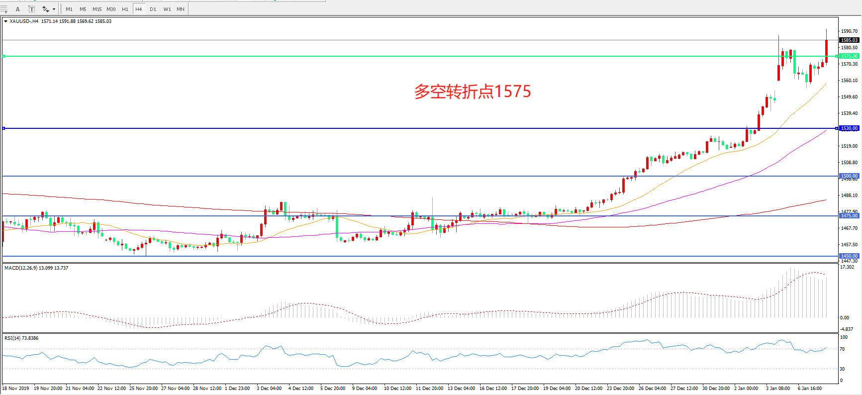 交易策略:在1575.00之上看涨,目标1610.00   1645.00