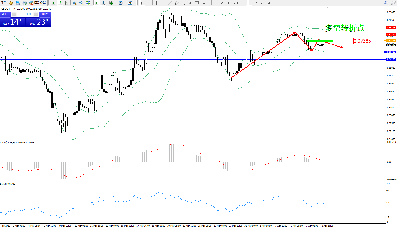 美元瑞郎USDCHF——4小时K线图显示: