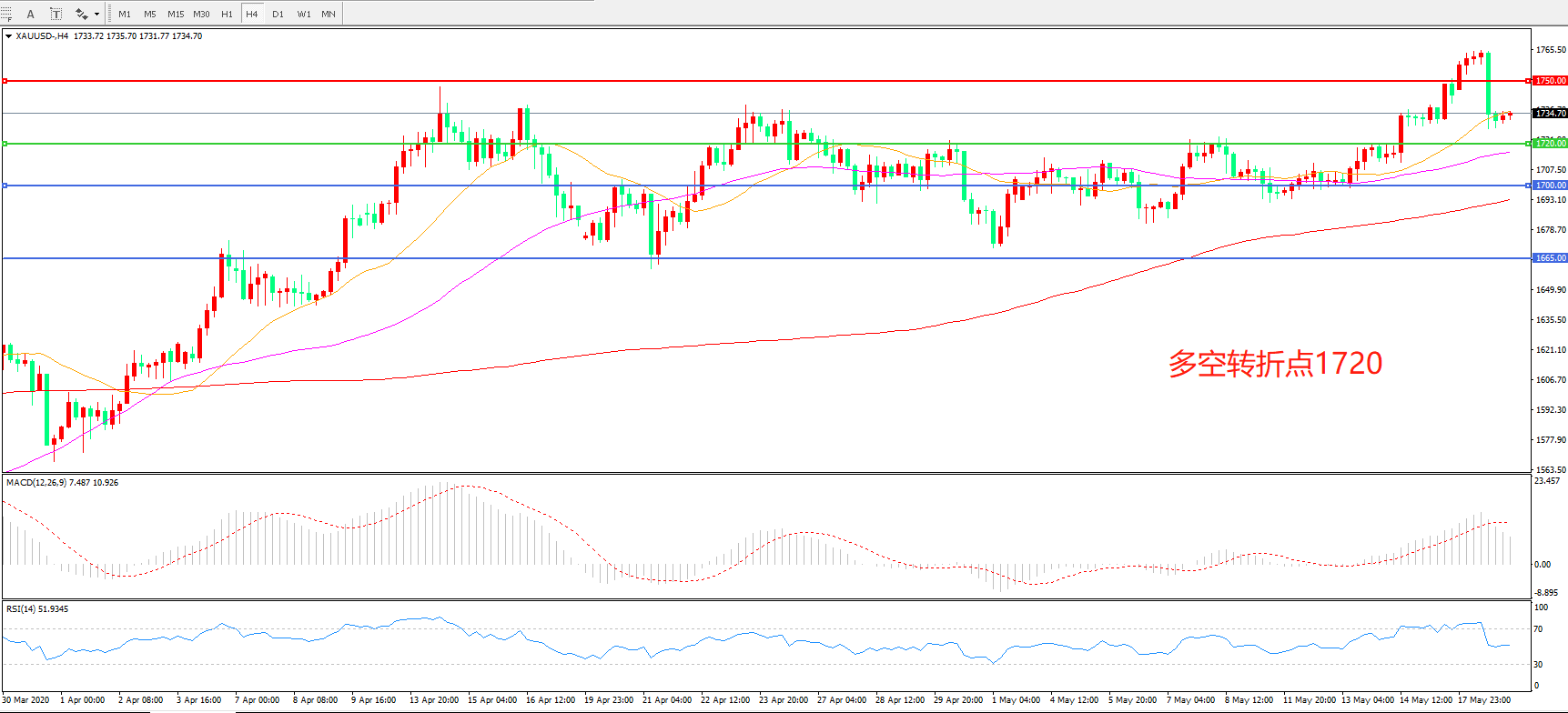交易策略: 在1720.00之上看涨,目标1750.00 1785.00