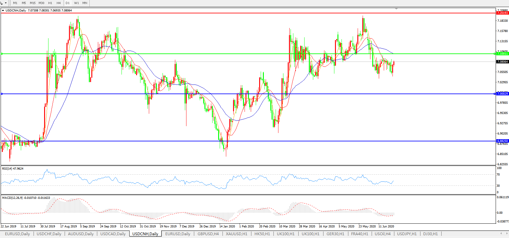 美元兑人民币USDCNH 日线图: