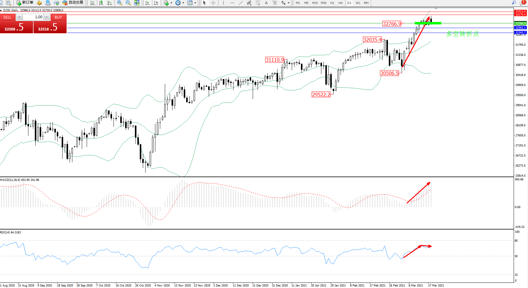 多空转折点:32766