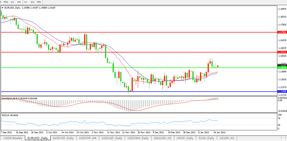 交易策略:1.1400上方看涨,目标1.1530、1.1700