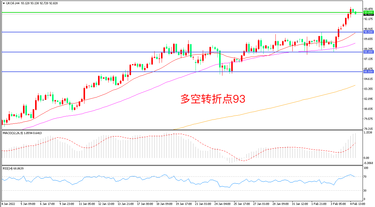 交易策略:在93.00之上看涨,目标96.00 100.00