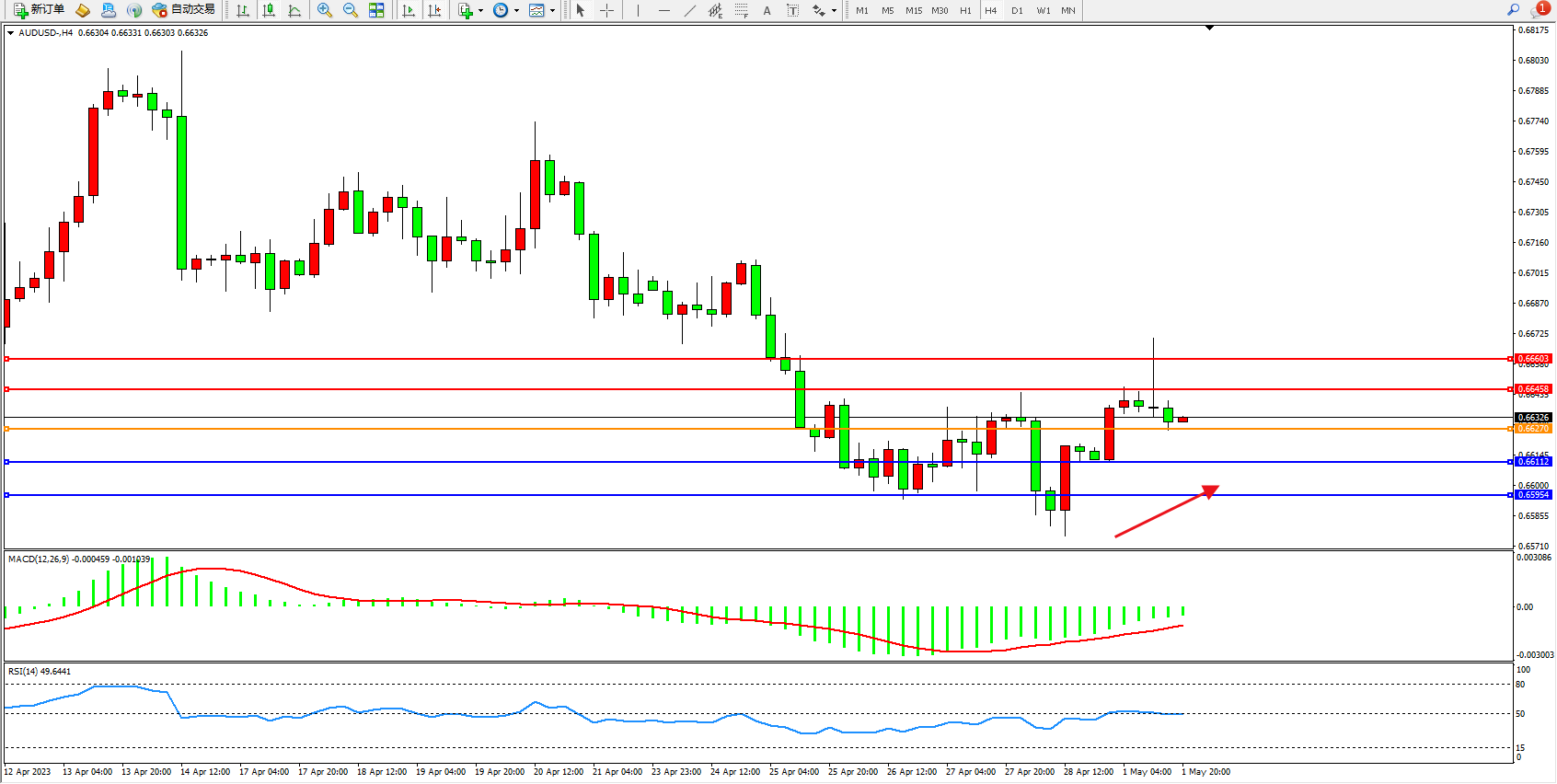 交易策略:0.66270上方看涨,目标0.66458 0.66603