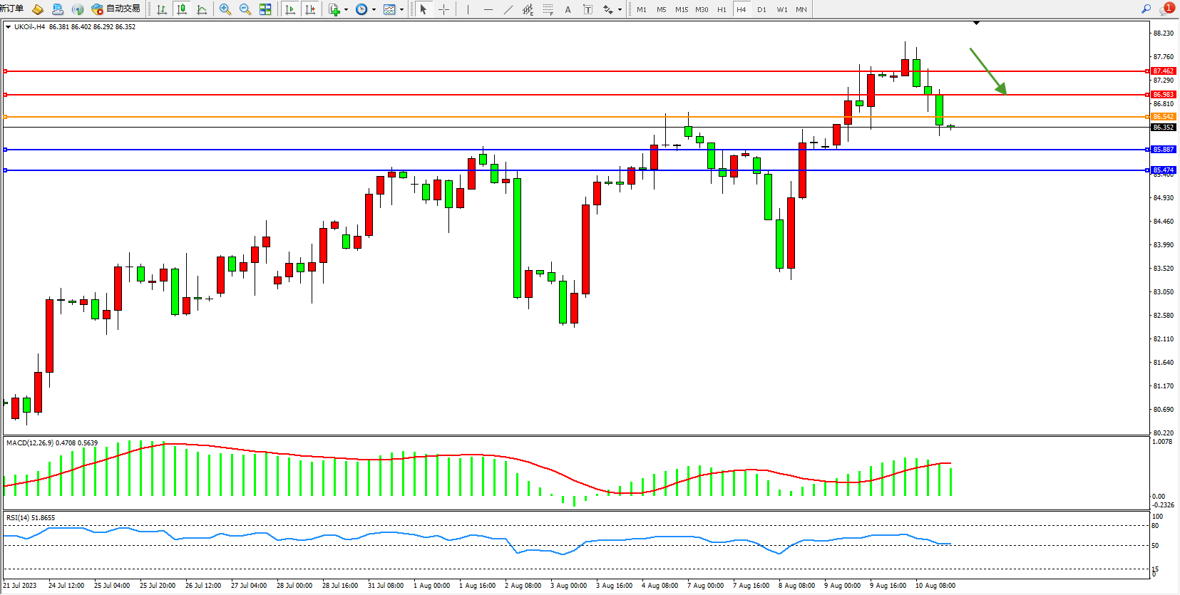 布油UKOil——4小时K线图显示: